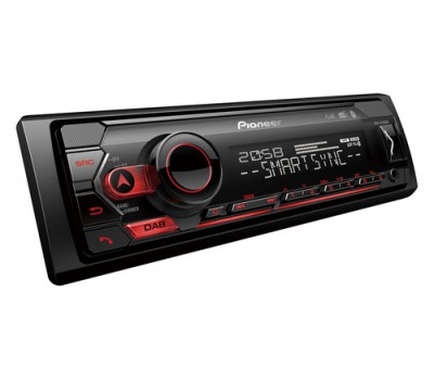1-DIN receiver with DAB/DAB+, Bluetooth, Red illumination, USB, Spotify, Pioneer Smart Sync App and compatible with Apple and Android devices.