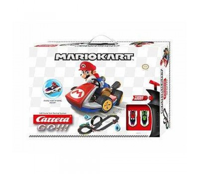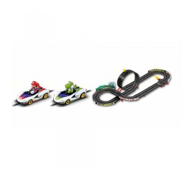 The Carrera GO!!! 'Nintendo Mario Kart - P-Wing' now features high-speed home circuit action with mighty Mario and his green friend Yoshi. The large-nosed green-and-white hero with orange shoes is all excited at the starting line, waiting for you to unleash the 1:43-scale karts!