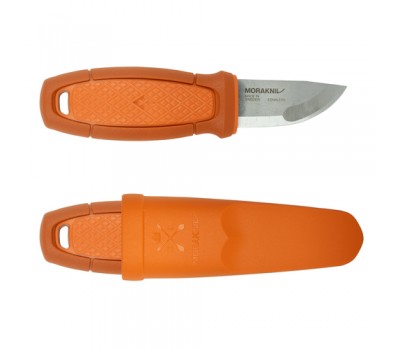 The ergonomic polymer barrel-shaped handle features a soft friction grip, finger guard and a 2.0 mm thick profile-ground blade made of recycled Swedish stainless steel, which provides both strength and stability in every cut. The polymer knife sheath is symmetrical, which means it suits both right and left-handed users. Can be complemented with the Morakniv Fire Kit for Eldris and Morakniv Belt Loop for Eldris, Garberg, or Kansbol.