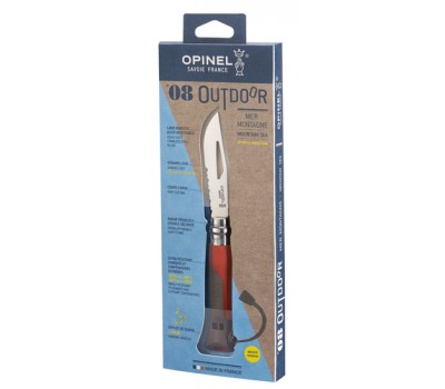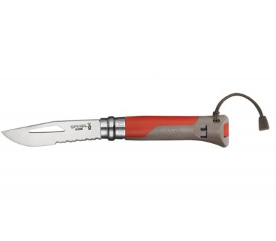 Its very strong blade (2.5 mm thick) is serrated over 3.5 cm to cut natural or synthetic ropes and has a shackle key for 4 to 10 mm shackles. Its handle is water-resistant and whitstands extreme temperatures. It is equipped with a whistle.
