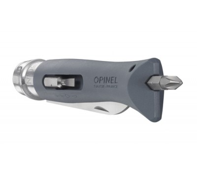 Its extremely robust blade is equipped with a wire cutter (5mm max cable diameter) and with a wire stripper (1.8mm max cable diameter). The handle includes two screwdriver tips.