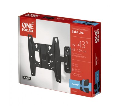 This One For All TV Bracket with turn (90°) and tilt (15°) adjustment is suitable for Televisions from 19 to 43 inches, and compatible with VESA sizes: 75 x 75, 100 x 100, 200 x 100, 200 x 200. All mounting materials such as screws, concrete anchors and spacers are delivered with the wall mount for a quick and straightforward setup. You can also download the free One For All app, full with handy installation tools. This full motion One For All TV Bracket is highly practical with a cable tidy facility to create a clean and uncluttered look.