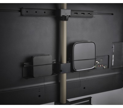 This One For All swivelling and height adjustable TV Stand is suitable for Televisions from 32 to 70 inches and compatible with VESA sizes up to 400 x 400. Your television will always be at the right position for optimal TV viewing, with 360° swivelling and height adjustability. With the integrated media player, you hide your device in the back. Hide unsightly cables with the integrated cable management system and create a clean and uncluttered look. The design comes with a universal soundbar holder compatible with any types of soundbars for a complete TV viewing experience. This modern TV Stand is engineered to assure stability for your TV. All angles are carefully chosen to ensure a low center of gravity. Additionally, you can use the included wall anchor for extra security.