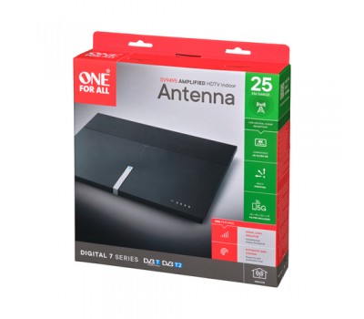 Get excellent reception for 4K Ultra HD digital TV with this One For All Indoor aerial and enjoy free DVB-T2 channels. This One For All aerial has a unique 3G/4G/5G block-filter to shield all mobile phone signals for the best reception possible. Its unique Automatic Gain Control ensures optimal gain level at all times. This multi-position One For All Indoor aerial can be placed standing, flat or mounted for crystal clear reception. Thanks to its patented Signal Level Indicator showing current the strength of the signal. Incoming signal is displayed with small LED indicators. Installation is very simple, an easy to understand quick setup guide is included in the packaging for a straightforward setup. For best performance, we recommend using this One For All Aerial within a range of 25 kms from your nearest transmitter.