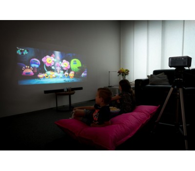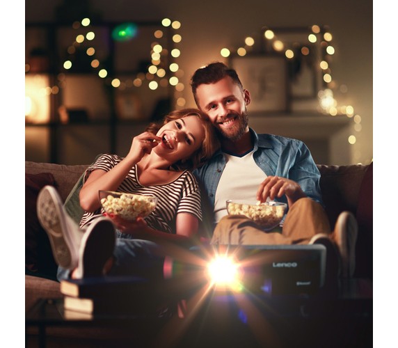 For a perfect listening experience, simply stream the sound wirelessly and directly from the projector onto a stereo system, soundbar, headphones or portable speakers. Alternatively, you can use the LPJ-700's own stereo speakers.