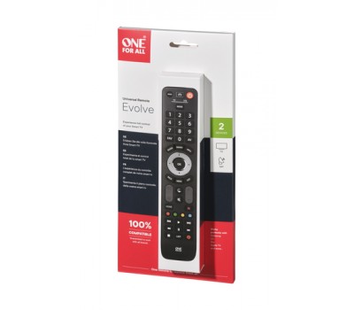 The One For All Evolve 2 universal remote is perfect to control 2 devices: TV and Set Top Box (Cable, Sat) with just 1 remote. It is optimised to operate Smart TVs. Easy setup in 3 steps, which takes less than a minute! The One For All Evolve 2 offers easy control of 2 devices and all their functions as on your original remotes! Use the learning feature to fully customise this remote with ease, by copying functions directly from your original remote. The convenient Watch TV activity offers seamless control of your TV and Set Top Box without changing between device types. Thanks to its Ultra wide angle, there’s no need to point exactly towards your devices to control them. One For All is the world leader in remote controls, guaranteed to work all brands.