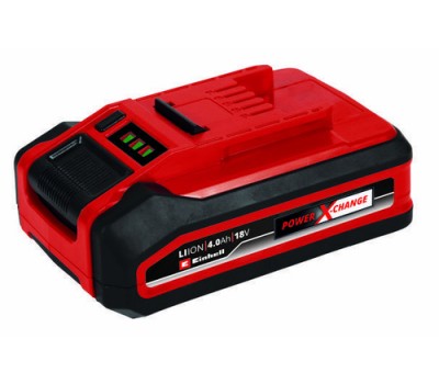 The Einhell 18V 4.0 Ah Power X-Change PLUS is a member of the multifunctional and completely interchangeable Power X-Change rechargeable battery system from Einhell. The Power X-Change rechargeable batteries can be used universally for supplying power and endurance to every cordless tool from the entire garden and workshop product family. The advantages to the customer are obvious: A single rechargeable battery and a single charger for all tools not only saves significant costs of buying, universal use helps protect the environment and provides flexibility in the home and garden too. It also eliminates the untidiness and chaos of having different rechargeable batteries and chargers for each separate tool. The latest generation of lithium-ion cells deliver 100% more power for maximum power in every application combined with a design which is 13% more compact with 12% less weight. What is more, the PLUS technology stands for extra power for energy-intensive jobs. In addition, the high-quality rechargeable battery resists the memory effect and the self-discharging normally associated with batteries, to deliver constant high power. The 18 V 4.0 Ah PXC PLUS is a high-end rechargeable battery from the Power X-Change family and is also suitable for TWIN-PACK use for 36 V applications. The ABS process-controlled active battery management system has a microprocessor for permanently monitoring the battery parameters. It therefore ensures maximum safety, optimum tool performance, maximum operating time and a maximum service life. The current charge level can be checked on a 3-step LED display. The housing is designed to be resistant to dust, corrosion and mechanical influences. The rubber coating provides high impact protection for the battery along with a good grip. There is a trough handle to enable it to be removed from each tool with ease.
