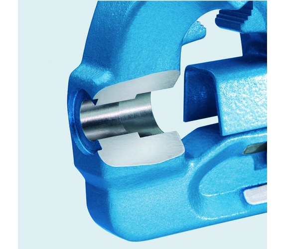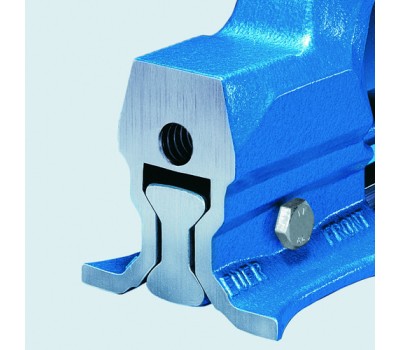 Because of its narrow drop-forged guides, it offers an enhanced clamping depth. Internal dual-prism guide track design offers optimal protection against damage and fouling. Large track guide surfaces assure constant, smooth functioning of the guide rails, fully machined to guarantee precision when working on sensitive workpieces.