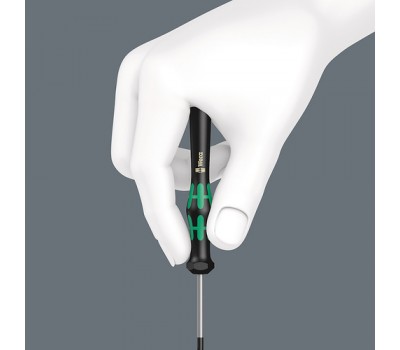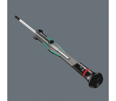 Wera Micro screwdriver set for fine mechanical screw connections. By supporting the hand on the rotating cap, and by the fast rotating zone below the rotating cap, lightning fast turning is possible. Time-consuming hand switching is eliminated. Storage and transport in a robust roll-bag, so the correct tool is always at hand. With Take it easy tool finder: colour coding by profile and size stamping.