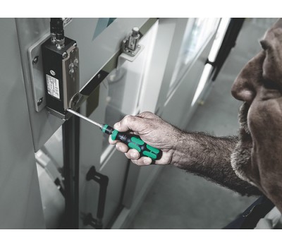 15-piece ratchet screwdriver set. Bitholding screwdriver with intuitive ratchet functionality. The ratchet mechanism with fine toothing integrated in the handle (36 teeth/return angle 10°) eases and accelerates screwdriving without having to reposition the tool. Spinning the tool is also possible. The ratchet mechanism completely embedded in the handle ensures very handy and comfortable work. Ergonomic switching to clockwise/counterclockwise or position 0. Kraftform Plus handle for comfortable ergonomic screwdriving, avoiding blisters and calluses. Magnetic bitholding screwdriver for bits with 1/4" external hexagon drive as per DIN ISO 1173-C 6.3 and E 6.3 (ISO 1173). The Rapidaptor quick-release chuck allows lightning-fast bit changes without any extra tools. The strong permanent magnet holds the bits firmly. 13 tough bits for universal use (Phillips-head Phillips and Pozidriv, TORX®, slotted and hexagonal socket), 89 mm length; chemically nickel-plated.