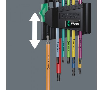 L-keys with thermoplastic sleeve (SPKL) out of easy-to-grip circular material. The sleeve ensures that work is pleasant and easy on the fingers even at low temperatures. All L-keys are quickly to hand thanks to their colour coding and size markings. The wear-resistant clip material ensures secure storage of the L-keys as well as simple removal. For TORX® and TORX® BO (with bore hole) connections.
