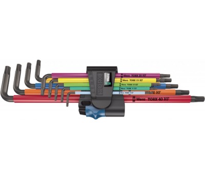 High quality L-key set for recessed TORX® screws. Holding function: the wedging forces resulting from the contact pressure between the drive tip and the screw profile securely hold the screw on the tool. Featuring an extra-long arm. Partially with ballpoint: the ball-end on the long arm allows for reliable working even in difficult installation situations. L-keys with thermoplastic sleeve out of easy-to-grip circular material. The sleeve ensures that work is pleasant and easy on the fingers even at low temperatures. "Take it easy" Tool Finder with colour coding according to size. The BlackLaser surface treatment provides outstanding surface protection, even against corrosion, and a long service life. The tools are quickly to hand thanks to the laser-engraved and thereby wear-resistant size markings on the L-keys. Come in a practical clip fastener out of wear-resistant material, enabling secure storage of the L-keys as well as simple removal.