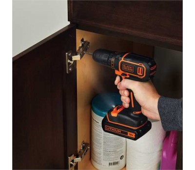 A high performing cordless drill driver is an essential part of any DIY toolbox. A BLACK+DECKER 18V lithium-ion drill driver provides the speed, torque and battery runtime you need to take on any drilling task in a variety of materials, including timber, metal and plastics. The 10 position clutch provides the performance you need for controlled drilling and driving, whilst the compact and lightweight design gives you comfort when working at heights and access to the tightest spaces. This drill is supplied with two 1.5Ah 18V lithium-ion batteries in a handy storage kit box. Part of the BLACK+DECKER 18V Lithium-ion family. One battery system, endless possibilities.