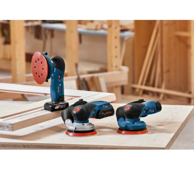 The cordless GEX 10.8V-125 Professional is intended for basic sanding, in-between sanding, lacquer removal, and finishing surfaces. It is applicable on wood, veneer, lacquer, and filler, as well as mineral and acrylic. It is compatible with the Professional 12V system as well as Bosch’s Click & Clean dust extraction system.