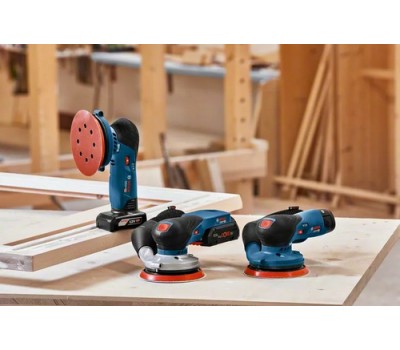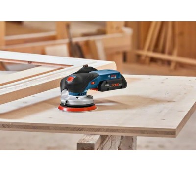 The GEX 18V-125 Professional random orbit sander provides users with optimal tool control, specifically, when working on larger surfaces. The random orbit sander´s outstanding balance close to the workpiece as well as the supreme ergonomics of its palm rest and grip offer optimal tool control. Fast work progress and a longer tool lifetime are ensured by its brushless motor and Bosch’s Professional 18V system. The GEX 18V-125 Professional can be easily and intuitively operated.