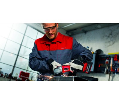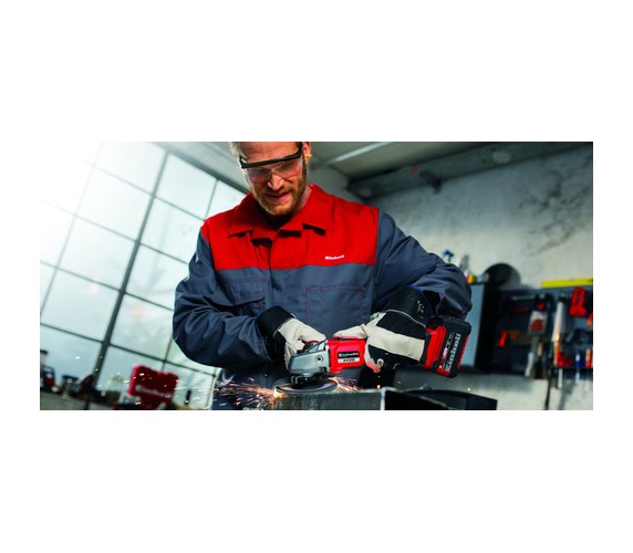The Einhell Axxio 18/125 Q cordless angle grinder is a reliable helper for jobs in the workshed, home and garage. Powerful, cordless and easy to work with - these were the qualities that featured high in the list of design criteria. The angle grinder is part of the Power X-Change family of products, where the rechargeable battery can be used in all of the devices in the system series. The 2.5 Ah battery and higher-performance series batteries deliver optimum results. The brushless motor offers greater power and a longer lifetime. The soft start function and restart protection make it safer to use. Meanwhile, comfortable working is ensured via the slim design with its ergonomic soft grip and additional handle. The separation of motor and gearing provides for smooth operation, while the quick-adjust cutter guard enables flexible working. For flexibility the additional handle can be fitted in two positions. The quick-fix slot eliminates the need for a face spanner to change the cutting wheel: Changeovers are quick and tool-free. The cordless angle grinder is equipped with overload protection, and the robust aluminum gearing housing is designed for long working life. This product comes without a battery or charger. Similarly, a matching cutting wheel (wheel diameter 125 mm) is also available separately.