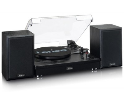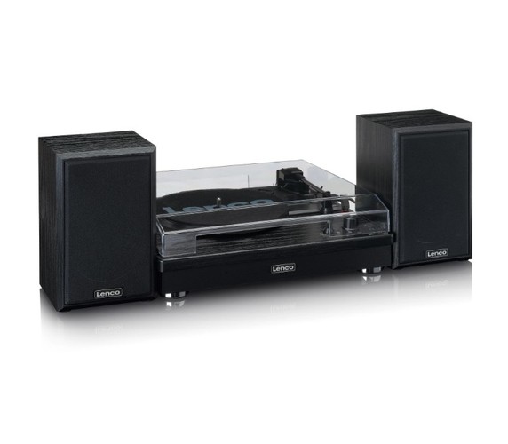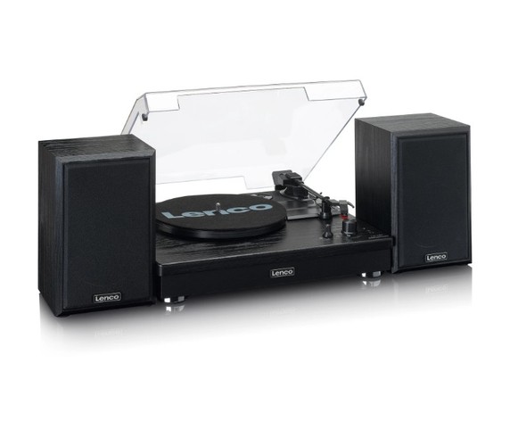 Enjoy your record collection with Lenco's LS-101BK Turntable. Thanks to its two speakers, both with an output power of 10W RMS, you can listen to your music at the highest possible sound quality. You can also place the speakers separately from the turntable, creating a stereo effect.