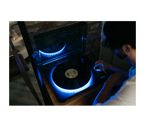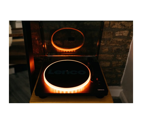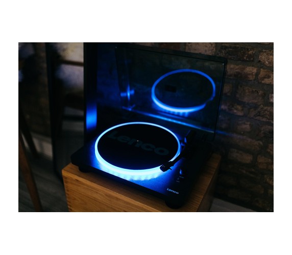 The Lenco LS-50LED is a modern record player with two built-in speakers and LED light animation in the platter. The colours of the lights change on the beats of the music, choose the auto-fade function or choose your favourite colour manually. It is also possible to use the turntable without the lights. Enjoy your favourite vinyl at the touch of a button. Forget complicated music installations, because with the Lenco LS-50LED you can effortlessly bring your records back to life.