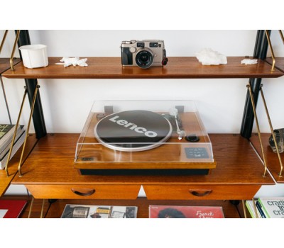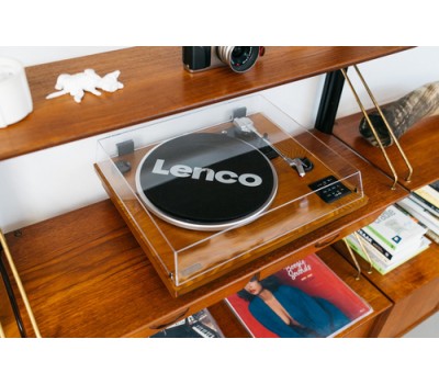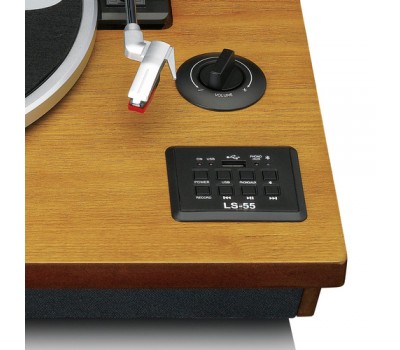 The LS-55 is a beautiful wooden turntable with built-in stereo speakers.