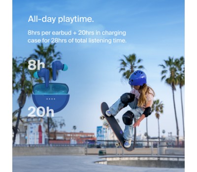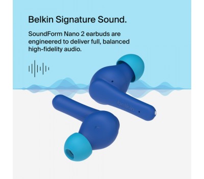 SoundForm Nano 2 earbuds bring better true wireless to young listeners. Kids 7 years and older can enjoy all-day comfort with five sizes of antimicrobial ear tips with a sealed fit. Ready for plenty of songs, videos and lesson plays, Nano 2 offers 8 hours of playtime and another 20 hours of charge in the case.