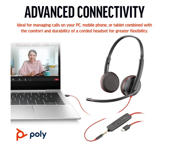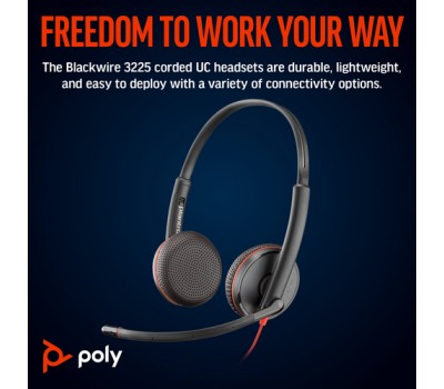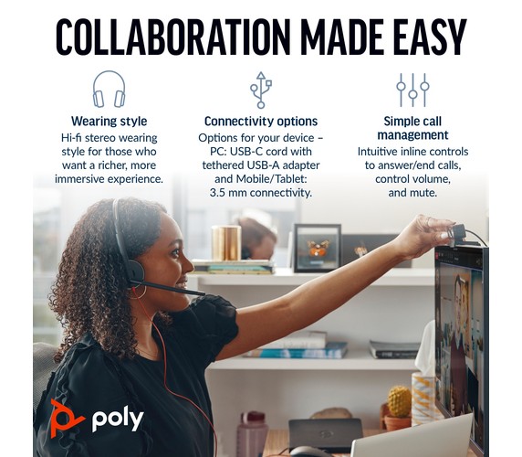 The Blackwire 3200 Series provides a quality audio experience in a headset that’s built for enterprise needs. With a sleek design and flexible microphone boom for a customizable fit, what’s not to love?