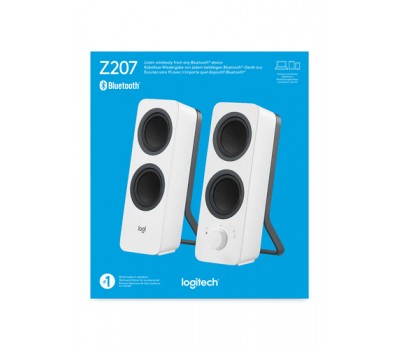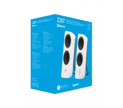 Logitech® Z207 has 10 Watts Peak/5 Watts RMS power that produces rich stereo sound at your desk. Each speaker has one active/powered driver that delivers full range audio and one passive radiator that provides bass extension. Listen via Bluetooth or a wired connection and seamlessly switch between them with the Logitech Easy-Switch™ feature. Easily access the Bluetooth pairing button, power, volume and the headphone jack on the front of the right speaker.