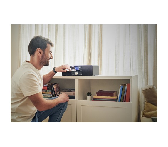 Panasonic’s DM202’a All-in-One Stereo System is for those who appreciate high-quality music and audio entertainment, but don't want to worry about extra wires or speakers. Contained within the elegant wooden outer-casing are a pair of stereo speakers, a DAB+ and FM radio, as well as CD player.