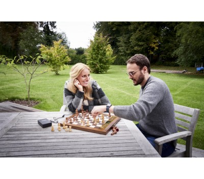 With its classic, harmonious design in a 40 cm real wood frame, it is the perfect size for playing at home. The handmade real wood pieces perfectly round off the high-quality impression.