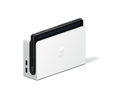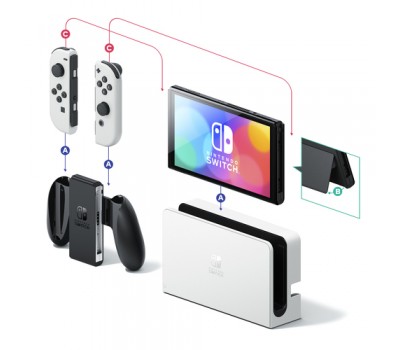 In addition to a new screen with vivid colors and sharp contrast, the Nintendo Switch - OLED model includes a wide adjustable stand for more comfortable viewing angles, a dock with a wired LAN port for TV mode (LAN cable sold separately), 64GB of internal storage, and enhanced audio in Handheld and Tabletop modes using the system’s speakers.