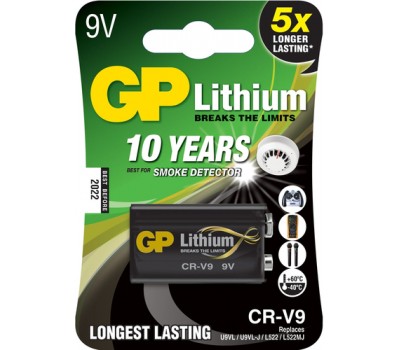 GP Lithium 9V is the best choice for powering smoke detectors. Providing 5 times longer lifetime than standard 9V batteries, it is the ideal solution to avoid operating problems and regular replacement.