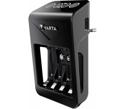 The new VARTA LCD Plug Charger+ is compatible with all AA, AAA & 9V NiMH rechargeable batteries and the additional USB output can charge external devices simultaneously.