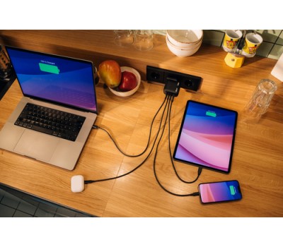 Galliam Nitride (GaN) technology delivers high-powered, fast, efficient charging, and generates less heat. GaN chargers are smaller and lighter than traditional silicon-based chargers, making them ultra-portable and ideal for travel.