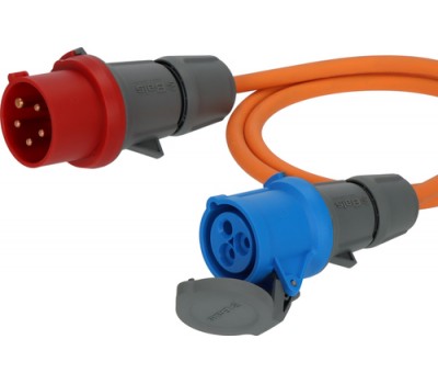 Thanks to the IP44 protection rating and the oil-resistant RN cable, the CEE Adapter Cable is ideally suited for permanent outdoor use, such as on campsites, farms, in maritime/yachting applications and on construction sites. The orange Adapter Cable with a CEE coupling and a CEE plug is not only extremely robust, but also impresses with the following features:
