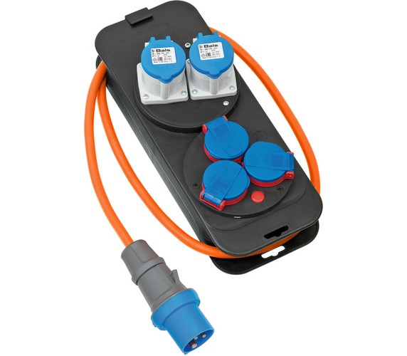 The robust power station with 1,5m rubber-neoprene cable is ideal for camping and motorhome use. Due to its IP44 protection class and cable quality, the caravan extension lead can be permanently used outdoors (protected against foreign bodies and splash water) and can also be easily hung on a wall if required. The power distributor, with its housing made of highly break-proof plastic, also has a practical roll-up device for storing the cable. Furthermore, the power station 16A convinces with the following features: