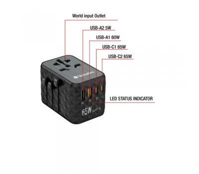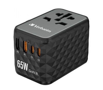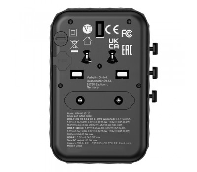 Verbatim UTA-05 65W GaN III Universal Travel Adapter with 2 x USB-C PD & QC 4+ & 2 x USB-A ports (32120)