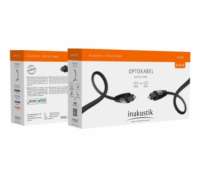 The optical digital cable with standardised Toslink plugs for connecting digital audio sources such as CD, DVD, Blu-ray players or game consoles to AV receivers, etc.