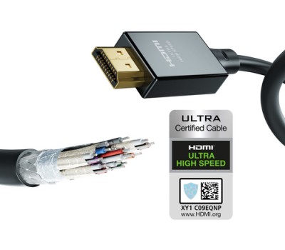 The HDMI 2.1 Specification includes a new cable - the Ultra High Speed HDMI® Cable. It’s the only cable that complies with stringent specifications designed to ensure support for all HDMI 2.1 features including uncompressed 8k@60 and 4K@120. The cable’s increased bandwidth capability supports up to 48Gbps. The Ultra High Speed HDMI Certification Program is a mandatory certification program for all Ultra High Speed HDMI Cables; and ensures quality Ultra High Speed HDMI Cables reach the market and support 4K and 8K video, HDR, VRR, eARC, and all other HDMI 2.1 features. Cables are also required to be tested and certified to ensure low EMI to reduce the possibility of interference with wireless networks, streaming media players, Bluetooth devices and mobile phones. All certified cables of any length must pass certification testing at an HDMI Forum Authorized Testing Center (Forum ATC). Once certified, cables will be required to affix an Ultra High Speed HDMI Certification Label to each package or unit of sale enabling consumers to verify the certification status of the product.