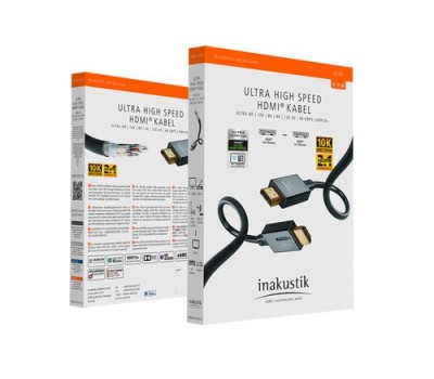 This HDMI Organisation-certified ultra high-speed HDMI cable from the in-akustik Star series guarantees crystal clear images and dynamic high-definition sound. Enjoy films and games in ultra HD 10K resolution with a refresh rate of 120 Hz and a data rate of up to 48 GBPS. The supported audio formats such as DTS Master, DTS:X, Dolby True HD or Dolby Atmos enable an unmatched home cinema experience. The triple shielding protects sensitive data from external interference. Combined with the 24 k gold-plated connectors and wires made of high-purity OFC copper, the cable guarantees stable signal transmission for outstanding picture and sound quality. Packed with groundbreaking features such as HDR10+, Dolby Vison and Enhanced ARC (eARC), the cable supports the latest HDMI 2.1 standard and is of course downwards compatible with older HDMI versions. It is specifically designed to connect digital AV components such as set-top boxes, Blu-ray players, AV receivers, TVs, projectors and gaming consoles such as the Xbox One, Xbox One S, Xbox One X, PS3, PS3 Slim, PS4, PS4 Pro or Nintendo Switch and upcoming next-generation consoles such as the Xbox Series X or PlayStation 5 (PS5).