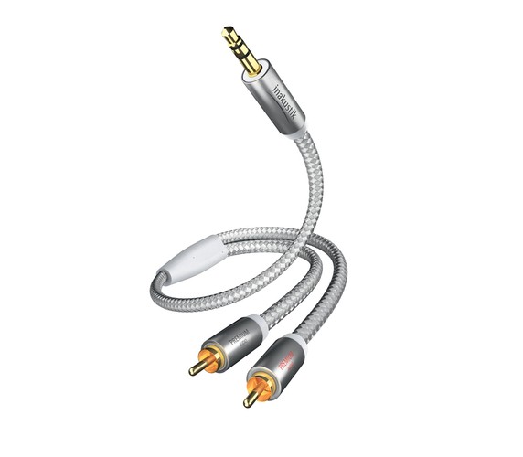 Double-shielded MP3 audio cable with rich-in-sound solid conductors for connecting an MP3 player (iPod), a laptop or PC to an amplifier or AV receiver.