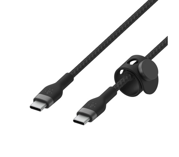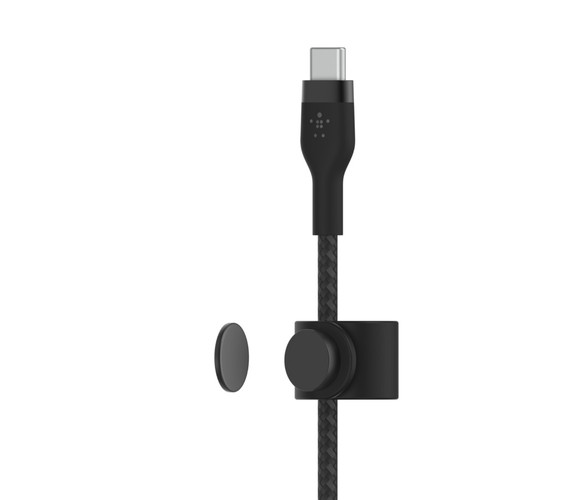 Our BOOST↑CHARGE™ PRO Flex braided silicone cables combine ultra-flexibility with long-lasting durability. In fact, they are up to 30X more durable* than ordinary cables and are built to resist tangling and fraying. This USB-C to USB-C cable is USB-C PD compatible, supporting fast charging speeds of 0-50% in 26 mins**. Easily store and mount it anywhere with its magnetic cable management system. Comes in three lengths and four stylish colors.
