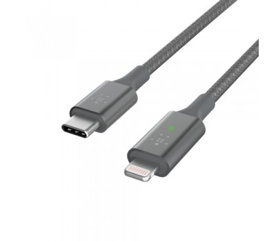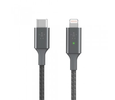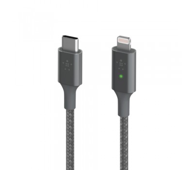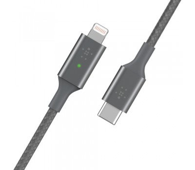 Smart technology communicates with your iPhone and changes the cable’s LED color to show status: amber is charging, green is fully charged.