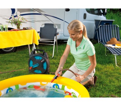 The GARDENA Classic Hose Box 15 Set is small and compact. It is ideal for transportation, e.g. for camping, leisure activities and water sports. With its light weight, it is easy to carry. The crank handle and the carrying handle can be folded. That's why the Hose Box requires very little space and fits in the car or caravan. The set includes a 15-metre-long quality hose and a 1.5-metre-long connection hose. All GARDENA System Fittings and a GARDENA Adjustable Spray Nozzle are assembled. The Hose Box can be immediately used – simply connect to the water source, unwind the required hose length and water away. Useful in all situations.