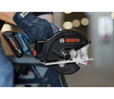 The GKM 18V-50 Professional is the specialist for quick and precise sawing of metal, particularly of cable trays or threaded rods and of steel (ferrous metal). It is compatible with all Bosch Professional 18 V batteries and chargers (Professional 18V system).