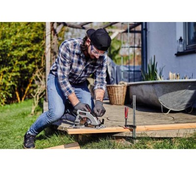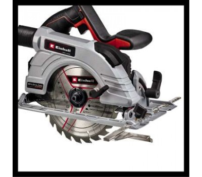 The Einhell Cordless Handheld Circular Saw TE-CS 18/190 Li BL-Solo is a powerful member of the Power X-Change family from Einhell. The high-quality lithium-ion rechargeable battery packs from the system series can be freely combined with all PXC devices. In addition, the brushless motor supplies more power and runs for longer than conventional carbon brush motors – completely without any signs of mechanical wear. The cordless handheld circular saw is handy and easy to operate thanks to the tool-free adjustment options for cutting depth and tilt angle, as well as the easy saw blade change mechanism via the spindle lock. The splitter adapts to the cutting depth, while the parallel stop enables precise and clean cuts. The large handle offers a safe and secure grip to prevent fatigue while working. The high-quality saw table is made of robust yet lightweight aluminum. The high-grade carbide saw blade delivers precise and clean cuts. The dust extraction adapter helps keeps the workplace clean. High-quality LED lighting ensures optimum alignment of the cutting area. The cordless handheld circular saw is compatible with all Einhell guide rails. This product comes without a battery or charger. These are available separately, for example as a practical starter set.