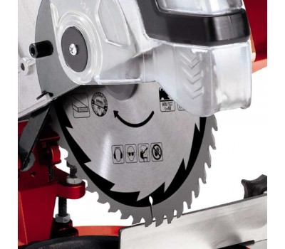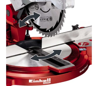 Equipped with a carbide saw blade in professional quality, the TH-MS 2112 crosscut and miter saw is quickly available to carry out minor jobs such as making crosscuts and miter cuts in workpieces made of wood, laminated panels and plastics. The high-quality work table made of die-cast aluminium comes with an exact angle adjustment facility which can be latched single-handedly in various positions. The table insert is equipped with a practical scale for reading off the workpiece width easily from the working position. While workpiece supports on both sides and a reliable clamping device ensure exact operation, a cutting depth control facility permits even more challenging jobs to be performed with ease. The carbide-tipped saw blade in professional quality offers a cutting capacity of over 200 m in particleboard and is easily changed thanks to a spindle lock. A sawdust bag keeps the workplace clean and a transport brace ensures easy and safe transportation.