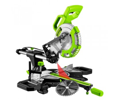 The ZIPPER ZI-KGS210DS miter saw with 2 saw blade speeds for optimal processing of your workpieces. The laser for visualization of the cutting line as well as the extendable workpiece supports, the two included 210 mm saw blades once with 24 and once with 40 teeth complete the saw.