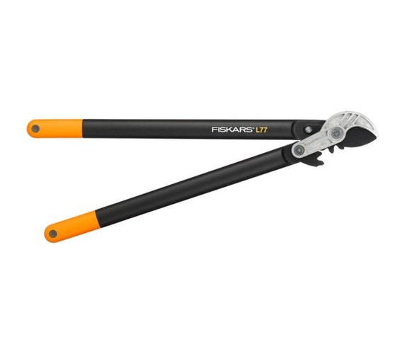Fiskars PowerGear™ Anvil Lopper (L) L77 is a full sized lopper for the bigger cutting jobs - for example cutting tree branches and thicker branches in general. The handles are made from FiberComp™ to make them extremely lightweight and strong which is further enhanced by SoftGrip™ covered handles for increased comfort. As with other members of the PowerGear family, the patented PowerGear™ mechanism makes the cutting 3 times easier compared to standard mechanisms, which is a great advantage. The upper blade is made from high quality hardened carbon steel ensuring that they can be sharpened and hold an edge for longer. The quality of the blade is further enhanced by a non stick PTFE coating on upper blade to reduce friction and make cutting and cleaning easier. The anvil blade made from cast aluminium enables easier cutting of hard, dry wood, which is the purpose of anvil loppers.