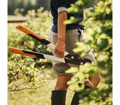 The FiskarsPowerGear™X bypass lopper is designed for frequent cutting of fresh wood. It gives you three times more force thanks to its unique patented mechanism. Add precision-ground stainless steel blades and friction-reducing PTFE blade coating to the equation and you have a real cutting edge combination. As well as the stainless steel blades, it has a weather-resistant, light, and yet incredibly strong aluminium shaft. Its SoftGrip material and 3D contour moulding means you need less force to hold it.