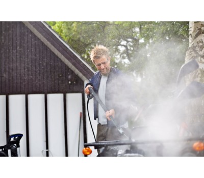 Perfect for when you need to complete tougher and more extensive cleaning tasks as efficiently and effectively as possible, this washer boasts a long lance and telescopic handle. The large foam sprayer, in-built trolley and robust wheels guarantee great mobility, meaning you can cover surfaces up to 70m2 in an hour. Outdoor surfaces including driveways, swimming pools, caravans, boats and horse trailers will appear sparkling new in no time with this exceptionally high-performance washer.
