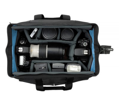 The bag is very padded on the inside with numerous compartments which provide safe areas for all pieces of equipment.
